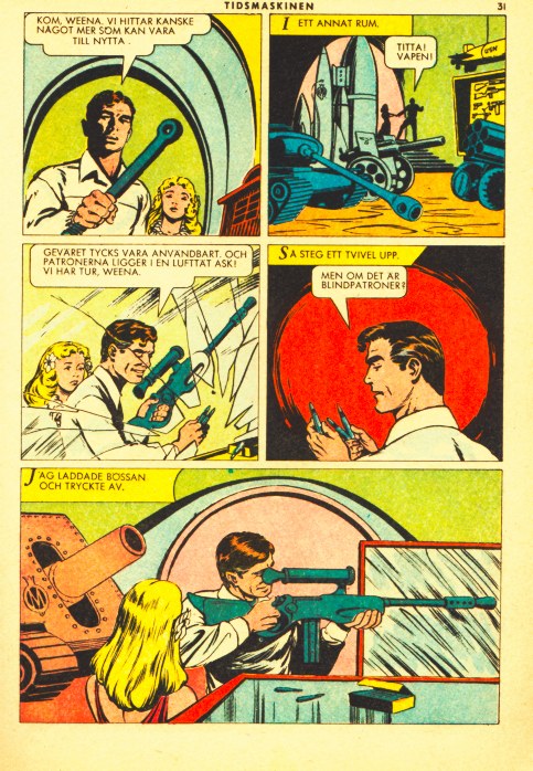 Come on Weena, we will perhaps find something else which can be useful. In an another room. The rifle looks useful and the cartridges are in an airtight box! We have luck, Weena! Then came a doubt. I loaded the shotgun and pulled the trigger.
